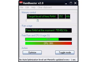 RamBooster si insedia discretamente nella system tray e monitora in tempo reale il consumo di RAM. Quando questa memoria scarseggia RamBooster forzerà la liberazione di quella non più usata da altri programmi. L'intervento potrà essere manuale o automatizzato al raggiungimento di una predeterminata soglia di carico.